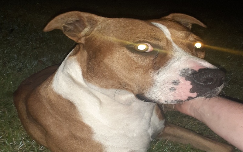 Description: | He has white stripe on face white under neck and chest. Has a big scar |