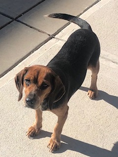 Description: | Female hound, black and tan coloring. Very friendly and comfortable around people. Is used to being indoors |