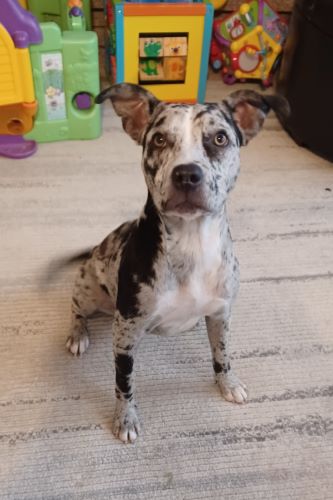 Description: | Dog is about medium sized. She is Grey and white with black spots. Knows some commands and very sweet. |