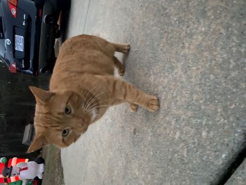 Description: | He is not neutered. Has a small split on the side of his ear. Is very vocal, skittish but willing to come around for food. He’s pretty big and has a small white patch under his chin. |