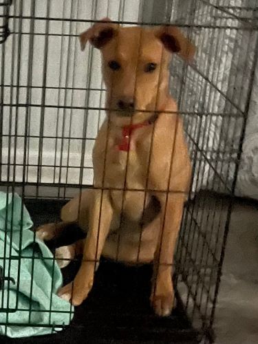 This is still a pup , weight approximately 30#, took to my vet and was negative for a chip identification.