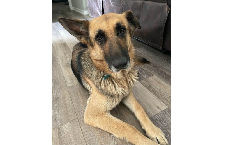 Description: | This pet is a female German Shepherd. She appears to be a senior dog. She is tan with black markings on her face, back and ears. Her left ear droops. |
