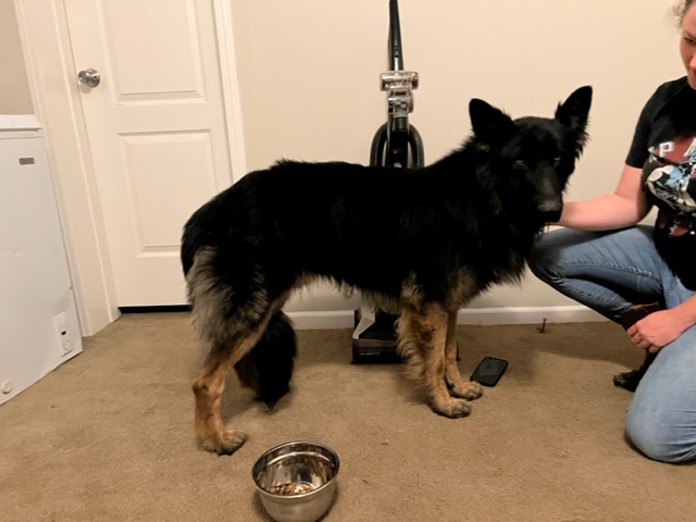 Description: | Long haired German Shepherd, male, that appears to be 1-2 years old. All black face with brown markings. |