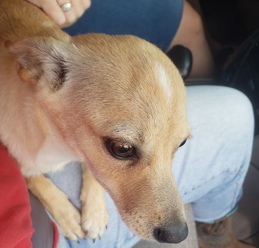 Small, male, creme and white colored. Maybe a mix with Chihuahua.