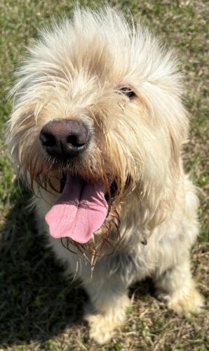 Description: | Medium to large cream/white female dog. Shaggy hair. Appears to be some type of doodle. Very friendly, high energy. Knows basic commands. |